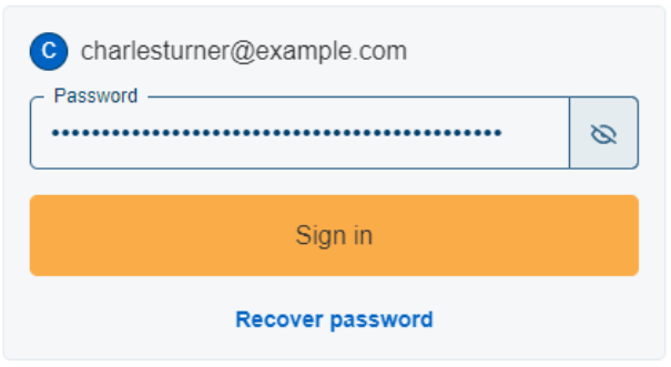 Enter your password and click Sign in. If you have forgotten your password you can use the Recover password option to set a new one via email.