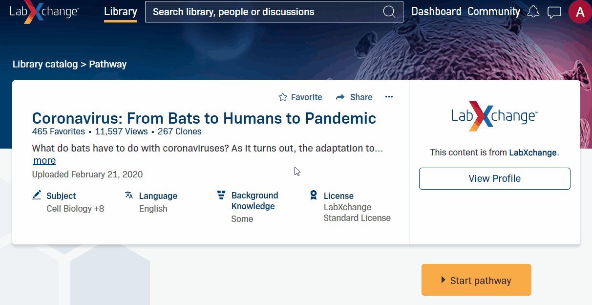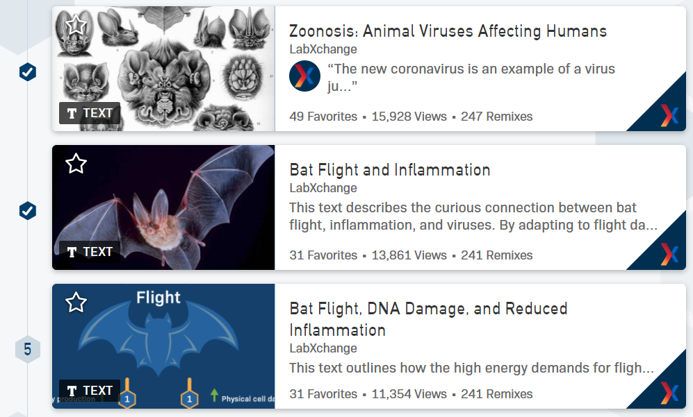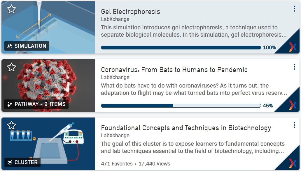 If you are a registered user of LabXchange, we will help you track what activities you have completed. For any Pathway you are working through, you will see that the numbers down the side of the activities will convert to checkmarks to help remind you what you have already done.