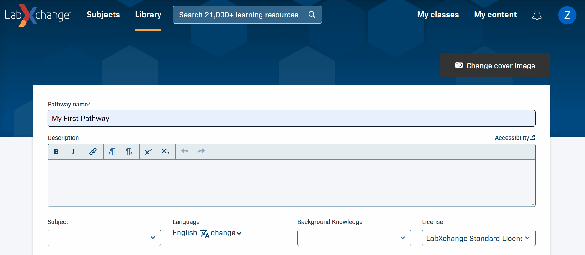 The pathway can now be saved, although you do have the option of including additional context like a description or learning objectives if appropriate. When you are ready, scroll to the bottom of the page and tick I agree to the LabXchange Terms of service and Privacy Notice, then click Save Pathway.