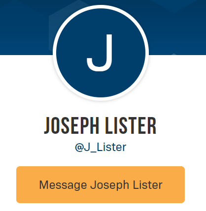 Once you have selected a user from your search results, click on their username to see their profile and any information which is visible to others. If they have opted in for messaging, an orange button will appear under their profile name which will let you start a conversation.