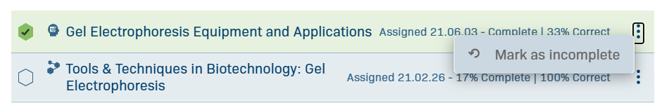 Yes, simply open that student's individual Progress report from the Learner's page of your Class and click on the menu icon to the right of the activity you want to reset. You will find the Mark as incomplete button there.